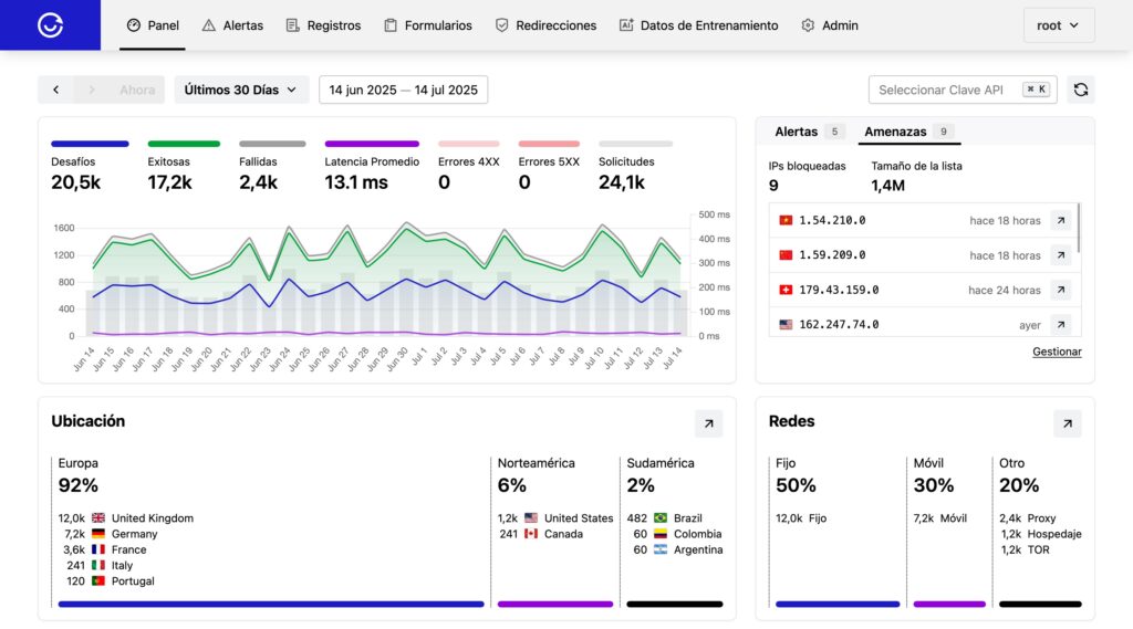 Riesgo & volumen | Sitios y formularios con riesgo medio/bajo | Alto tráfico, APIs, fraude, scraping, ataques automatizados |