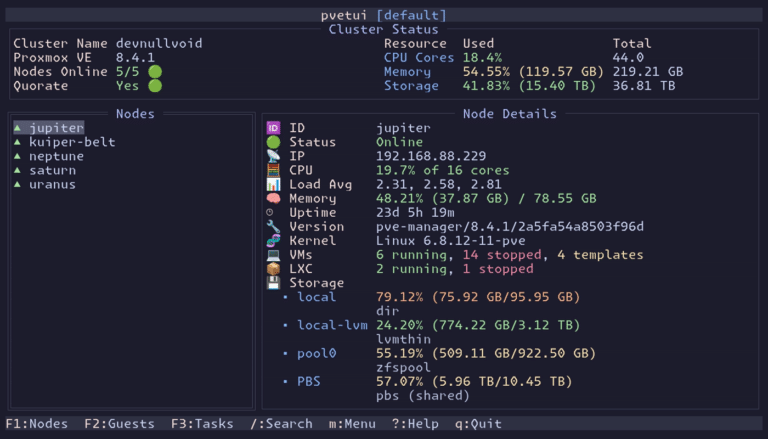pvetui: la TUI para Proxmox VE que lleva la gestión del clúster al terminal (con SSH y consola VNC integrados)