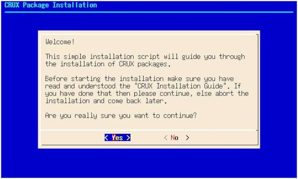 CRUX no incluye instaladores gráficos ni asistentes interactivos: la instalación es manual, y requiere familiaridad con la terminal, particionamiento de discos, montaje de sistemas de archivos, y compilación desde código fuente.