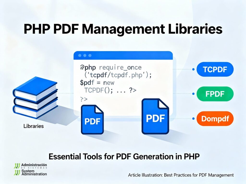 Convertir HTML en PDF, rellenar plantillas, firmar documentos o ensamblar informes multipágina es una necesidad común en proyectos PHP. La “mejor” librería no es única: depende del caso de uso (HTML complejo, rendimiento, firma digital, PDF/A, manipulación avanzada, presupuesto, etc.). Este artículo repasa las opciones más utilizadas —dompdf, mPDF, TCPDF, FPDF, HTML2PDF, PDFlib, SetaPDF— y añade alternativas modernas basadas en motores externos (wkhtmltopdf, headless Chrome/Browsershot) y en FPDI para importar/mezclar PDFs. Al final, se ofrecen recomendaciones por escenario.