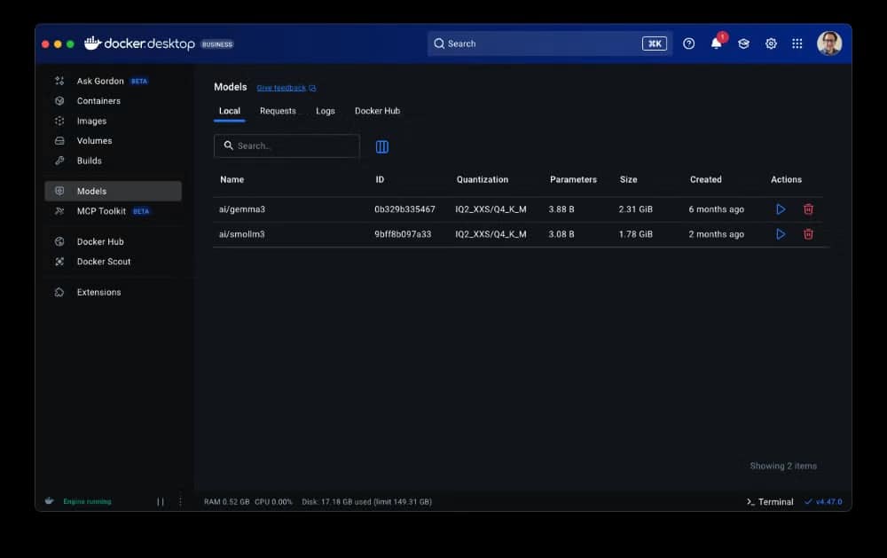 - Catálogo de modelos: selección curada en Docker Hub, lista para desarrollo, pipelines, staging o incluso producción.