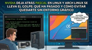 La retirada de soporte “real” para GPUs veteranas suele ser una noticia rutinaria… hasta que deja a miles de usuarios mirando una consola en negro después de un pacman -Syu. Eso es exactamente lo que ha ocurrido con la última transición de drivers de NVIDIA en Arch Linux: una combinación de cambio de rama, packaging y falta de “colchón” para el usuario ha provocado que equipos con GPU Pascal (GTX 10xx) o Maxwell (GTX 9xx) pasen de un escritorio funcional a un sistema que no carga el módulo propietario y termina arrancando en CLI.