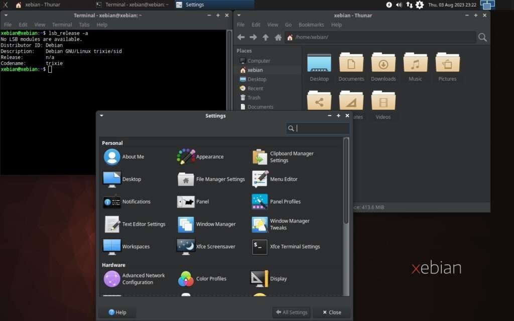 Aunque técnicamente no se trata de una derivada convencional, Xebian se presenta como una mezcla (blend) de Debian, manteniéndose fiel a la estructura y repositorios originales de Debian sid, pero añadiendo una capa de personalización visual y de configuración que lo distingue.
